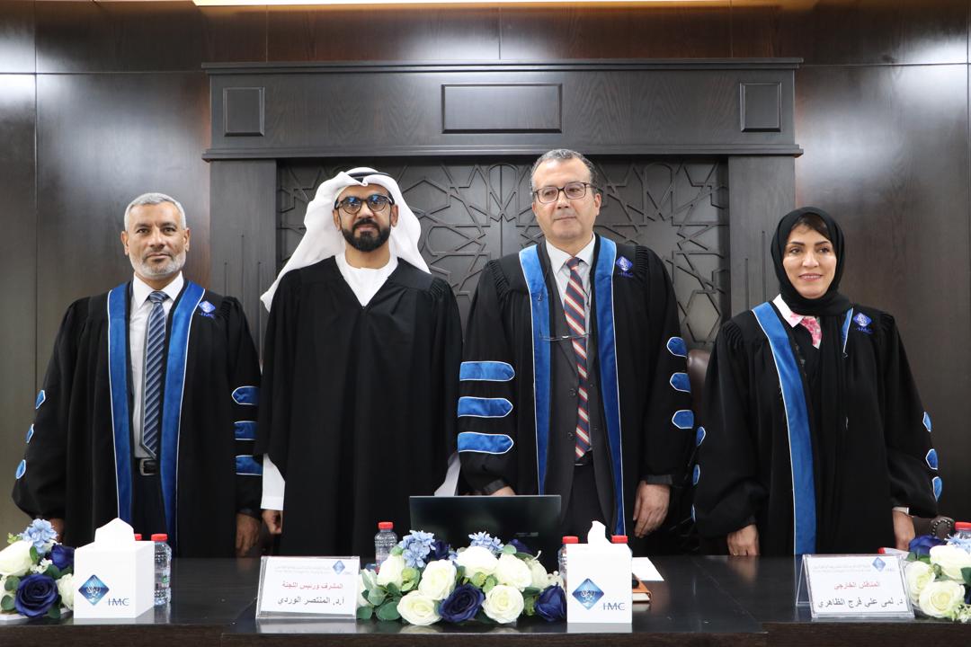وقف الموظف العام عن العمل احتياطياً - دراسة مقارنة، والمشكل لمناقشتها لجنة علمية برئاسة الأستاذ الدكتور المنتصر الوردي رئيسًا ومشرفًا، والأستاذ الدكتور Tarek Abo Elwafa مناقشًا خارجيًا، والأستاذ الدكتور لمى علي فرج الظاهري مناقشًا خارجيًا
