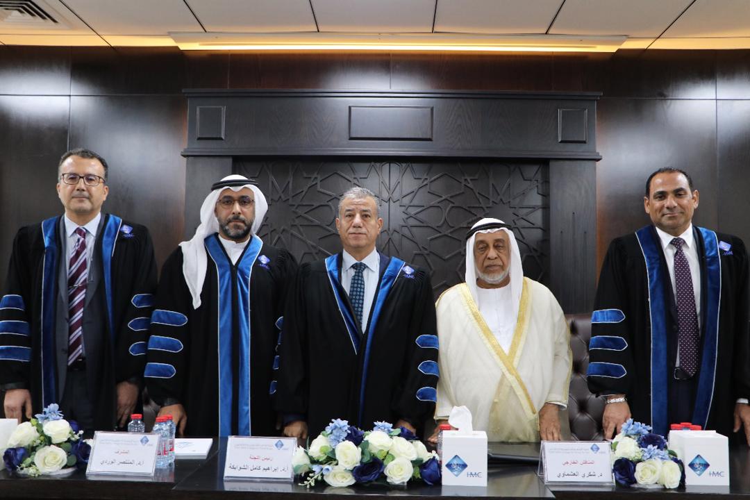 تمت مناقشة رسالة الطالب: يوسف عيسى عبدالله بتخصص القانون العام لرسالته للماجستير الموسومة: التأطير القانوني لأجندة دبي الاقتصادية "D33"، والمشكل لمناقشتها لجنة برئاسة أ.د. إبراهيم كامل الشوابكة أستاذ القانون الإداري والدستوري في جامعة الامارات العربية المتحدة رئيساً للجنة، وعضوية د. شكري رجب العشماوي أستاذ الاقتصاد والمالية العامة بالأكاديمية العربية للعلوم والتكنولوجيا والنقل البحري – المستشار في حكومة دبي مناقشاً خارجياً، و أ.د المنتصر الوردي مشرفاً.
