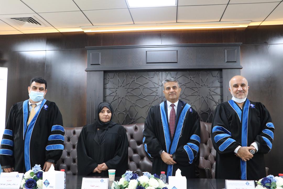 رسالة الطالبة: نعيمه عبدالله أحمد بتخصص القانون العام لرسالتها للماجستير الموسومة: المسؤولية الجنائية عن جرائم الاتجار في البشر- دراسة مقارنة، والمشكل لمناقشتها لجنة برئاسة أ.د. محمد أمين الخرشة أستاذ القانون الجنائي في جامعة العين رئيساً للجنة، وعضوية د. صفوان مقصود خليل مناقشاً داخلياُ، ود. خالد رمضان عبدالعال مشرفاً، وذلك بناء على تقرير المناقشين بصلاحية الرسالة للمناقشة.