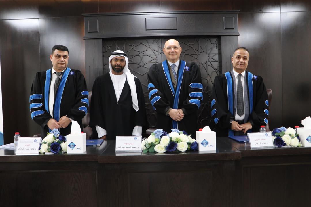 المواجهة الجزائية لجرائم التمييز والكراهية- دراسة مقارنة، والمشكل لمناقشتها لجنة علمية برئاسة الأستاذ الدكتور محمد السعيد عبد الفتاح رئيسًا ومناقشًا خارجيًا، والأستاذ الدكتور خالد رمضان سلطان مشرفًا، والأستاذ الدكتور إيهاب الروسان مناقشًا خارجيًا