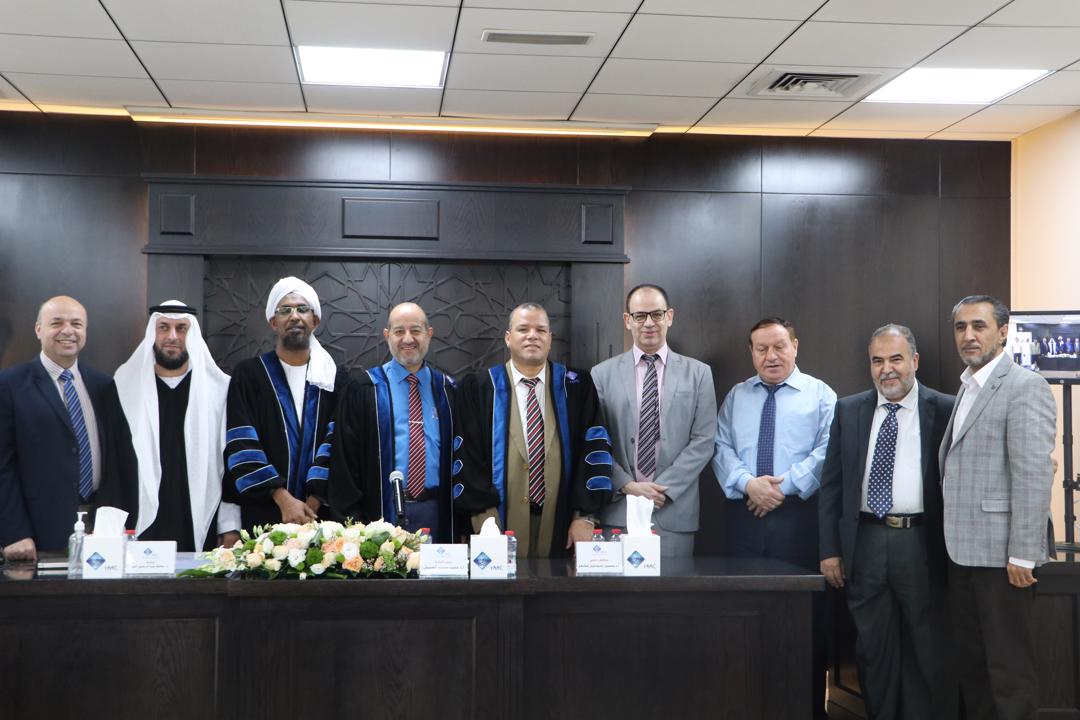عقدت مناقشة رسالة الماجستير للباحث "عبدالعزيز محمد عبدالله الملا" والموسومة: "زيادات واستدراكات أبوعبدالله محمد بن إبراهيم بن خليل التتائي (المتوفى 942 هـ) على رسالة أبو محمد عبدالله بن أبي زيد القيرواني (المتوفى 386 هـ) من خلال شرحه تنوير المقالة في حل ألفاظ الرسالة من بداية باب في جمل من الفرائض إلى نهاية باب التجارة إلى أرض العدو" - تخصص الفقه - يوم الأربعاء الموافق 07/06/2023" ، حيث تمت المناقشة بقاعة المحكمة الصورية في مقر الكلية بالطابق الخامس وكانت الدعوة عامة لجميع شرائح المجتمع وتم بثها عن بعد عبر قناة الكلية باليوتيوب، وبعد المناقشة نال الطالب درجة جيد جدا مرتفع.