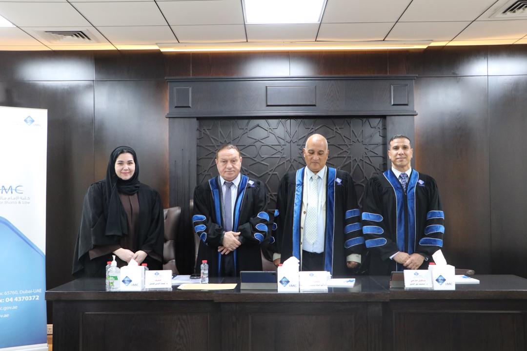عقدت مناقشة رسالة الماجستير للباحثة "حنان محمود خليل شحيط" والموسومة: " المسؤولية الجنائية لناقل العدوى بفيروس كورونا المستجد - دراسة مقارنة - تخصص القانون العام - يوم الإثنين الموافق 19/06/2023" ، حيث تمت المناقشة بقاعة المحكمة الصورية في مقر الكلية بالطابق الخامس وكانت الدعوة عامة لجميع شرائح المجتمع وتم بثها عن بعد عبر قناة الكلية باليوتيوب، وبعد المناقشة نالت الطالبة درجة جيد جدا مرتفع.