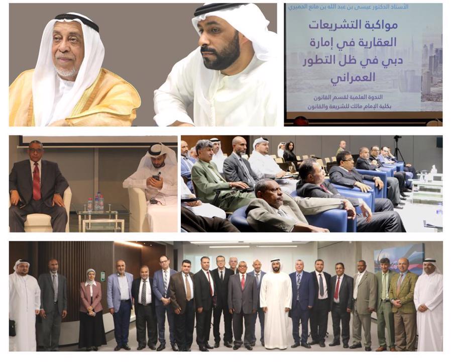 تحت رعاية وحضور سعادة الأستاذ الدكتور عيسى بن عبد الله بن محمد بن مانع الحميري الرئيس التنفيذي للكلية، نظمت الكلية ندوة علمية تحت شعار «مواكبة التشريعات العقارية في إمارة دبي في ظل التطور العمراني للإمارة»، بممارسة حق أولوية امتلاك عقار للجار الملاصق للوحدة، وتعديل تعريف العقار الوارد في المادة 2 من قانون رقم 2 لسنة 2022، بشأن استملاك العقارات للمنفعة العامة في إمارة دبي، وتوحيد الجهة المسؤولة عن تحديد نوع التعويض ومقداره، إضافة بعض الفقرات إلى نص المادة (11) من القانون رقم (13) لسنة 2008 وتعديلاته.