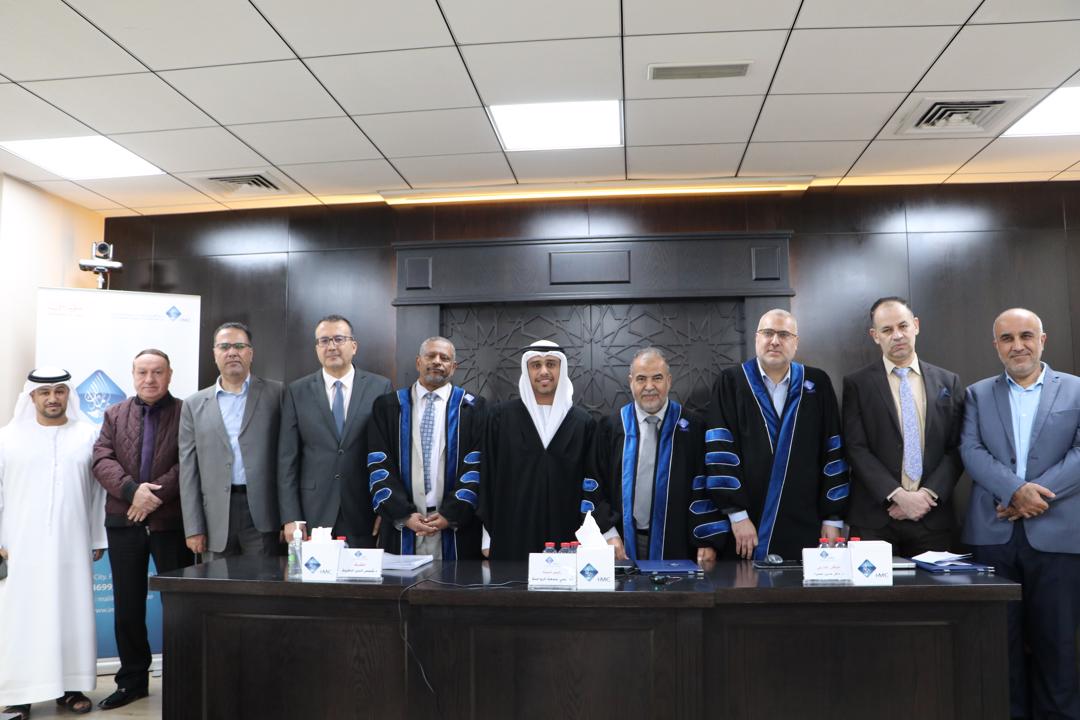 تمت مناقشة رسالة الطالب: بطي راشد عبدالله مرزوق المحيربي بتخصص الفقه لرسالته للماجستير الموسومة: الجواهر المضيئة في حل ألفاظ العشماوية تأليف الشيخ محمد المصري دراسة وتحقيقاً والمشكل لمناقشتها لجنة علمية برئاسة أ.د علي جمعة الرواحنة رئيساً، وعضوية د. ماهر حسين حصوة أستاذ الفقه و أصولة المشارك في جامعة العين مناقشاً خارجياً، و د. شمس الدين حامد التكينة مشرفا وذلك بناء على تقرير المناقشين بصلاحية الرسالة للمناقشة.