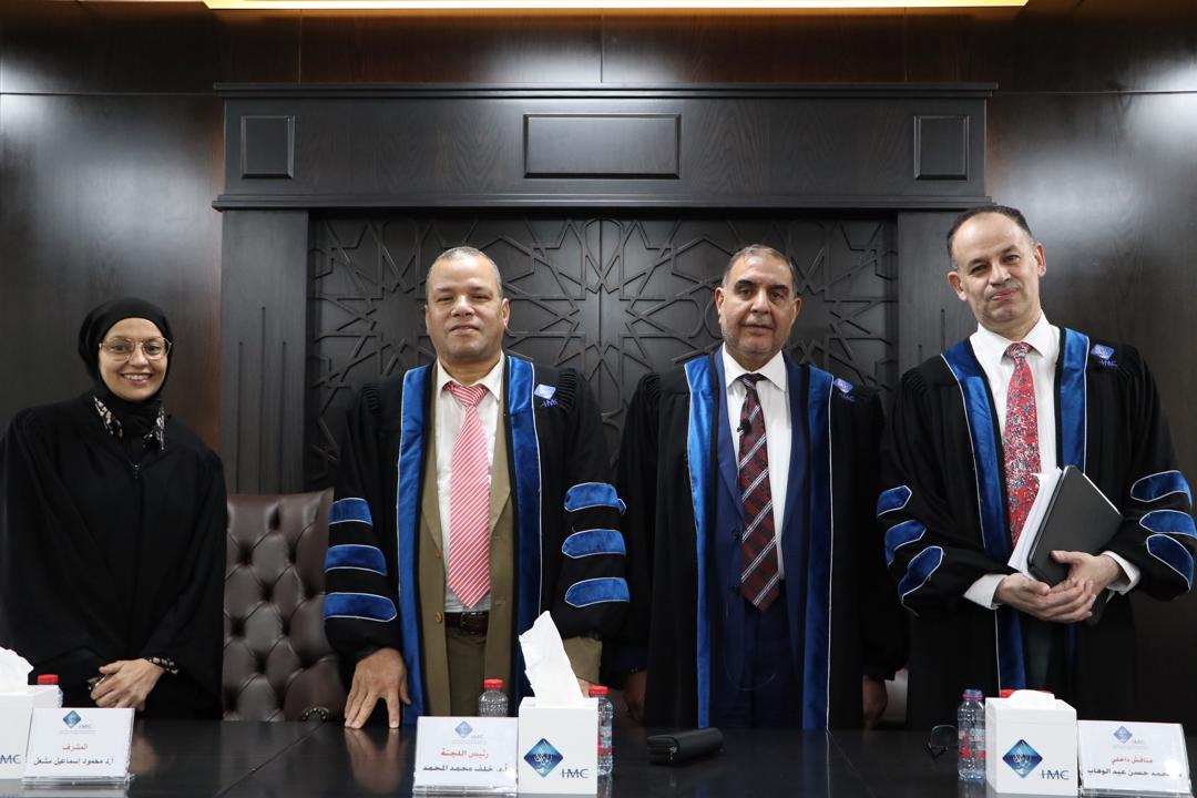 تمت مناقشة رسالة الطالبة: نهى المهندس بتخصص الفقه لرسالتها للماجستير الموسومة: "ما خالف فيه قانون الأحوال الشخصية الاماراتي مذهب المالكية، والمشكل لمناقشتها لجنة علمية برئاسة. أ.د خلف محمد المحمد أستاذ الفقه المقارن في جامعة العلوم والتقنية في الفجيرة رئيساً، وعضوية د. محمد حسن عبد الوهاب مناقشاً داخليا، و د. محمود إسماعيل مشعل مشرفاً، وذلك بناء على تقرير المناقشين بصلاحية الرسالة للمناقشة.