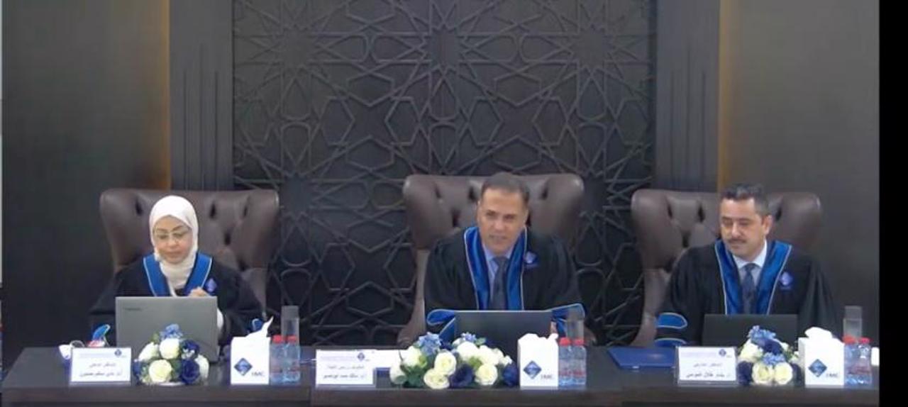 وذلك يوم الخميس الموافق 07/11/2024 الساعة الثانية ظهرا بقاعة المحاكمة الصورية بالطابق الخامس بمقر الكلية وتم بثها عن بعد عبر قناة الكلية باليوتيوب. وقد نالت تقدير جيد جدا مرتفع.