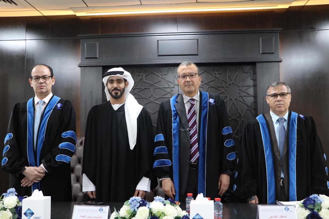 تمت مناقشة رسالة الطالب: محمد محمد عبد الله بن يميع السبوسي، بتخصص القانون العام لرسالته للماجستير الموسومة: الشريعة الإسلامية مصدرا للقانون الإداري في دولة الإمارات، والمشكل لمناقشتها لجنة علمية برئاسة أ.د. المنتصر الودي المشرف ورئيساً للجنة، وعضوية أ.د. شعبان أحمد رمضان أستاذ القانون الإداري والدستوري في أكاديمية شرطة دبي مناقشاً داخلياً، و د. محمد حسن عبد الوهاب مناقشاً داخلياً.